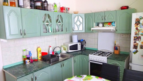 Kuchynská linka je v svetlozelenom prevedení, v kuchyni ostáva plynový sporák s elektrickou rúrou a digestor. Vstupné dvere sú nové s bezpečnostnými prvkami. Rekonštrukciou prešiel aj balkón, má 3-dielne sklenené výplne s pekným výhľadom a novú dlažbu.