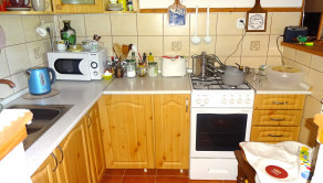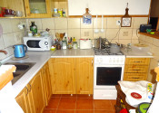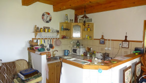 V kuchyni je k dispozícii plynový sporák s veľkou propán-butánovou fľašou, elektrickou rúrou a chladnička s mrazničkou. Elektrina v dome je prerobená v medi, ohrev vody je riešený novým elektrickým bojlerom s objemom 50 l. Podlahy v dome sú plávajúce a v kuchyni, pri vstupe a v soc. zariadení sú keramické dlažby. Takisto je nová fasáda aj stierky na stenách, stropy sú gazdovské trámy s novými doskami, krovy dobré a strecha bola natieraná minulý rok. Dvere sú masívne s obložkami a okná sú dvojité s drevenými rámami, žalúziami a sieťkami proti hmyzu. Voda do domu je potiahnutá z obecného vodovodu s vlastným meračom. Vpredu pred domčekom je zapustená plastová nádoba - žumpa. A pod prednou izbou je aj pivnica cca 5x5 m, kde vstup je spredu malými dvierkami. Okolie chalupy lemuje neveľká záhrada s okrasnými stromčekmi a kríkmi. Cena chalupy je bez nábytku a vybavenia.