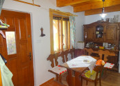 Domček má menší rovinatý, vzadu mierne stúpajúci pozemok o výmere 750 m2 /2 parcely/. Jedná sa o tehlový domček, zrekonštruovaný v r.2017 s týmito priestormi: predná izba s kamenným kozubom, kuchyňou oddelenou vymurovaným múrom od zvyšku jedálenskej časti, malá chodbička, spálňa a kúpeľňa so sprchovacím kútom a elektrickým rebrovým radiátorom s WC a vstupná veranda s kamennou dlažbou. K zadnej časti bola v r.2020 pribudovaná prístavba s dvomi priestormi slúžiace ako technická časť. V tomto priestore je aj ďalšia vodovodná prípojka a odsúvateľné drevené dvere.