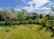 Okolie domu lemujú ovocné stromy a kríky. Prípojka na plyn je vedená pred oplotením nehnuteľnosti, kanalizácia je potiahnutá do domu.