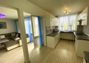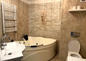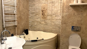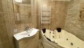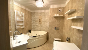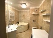 Vo všetkých miestnostiach sú nové dvere s obložkami, nové vstupné dvere, bola zrealizovaná výmena starých okien za plastové bielej farby so žalúziami. Všetky podlahy v izbách aj v kuchyni sú plávajúce, v kúpeľni s WC je položená keramická dlažba, bola vymenená kuchynská linka s plynovým sporákom a elektrickou rúrou. Vo všetkých priestoroch sú prerobené steny so stierkami a znížené stropy s sadrokartónovým systémom. V celej nehnuteľnosti sú nové panelové radiátory s digitálnymi meračmi tepla. V priestrannej murovanej kúpeľni s masážnym rohovou vaňou a WC-geberit je zmenená dispozícia soc. zariadenia, aj ďalších častí bytu. Kuchynská linka je trojdielna s umývačkou riadu, keramickým drezom, digestorom a elektrickou indukčnou doskou s elektrickou rúrou, takisto aj chladnička s mrazničkou zn. Samsung. V pracovni sa nachádza vstavaná skriňa so zabudovaným šatníkom.