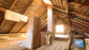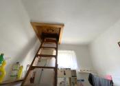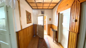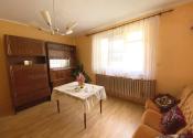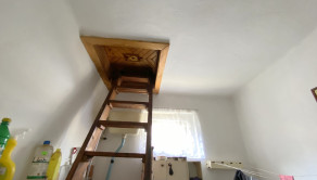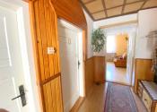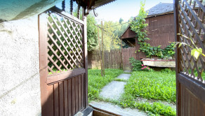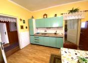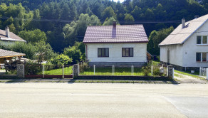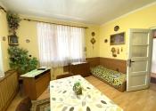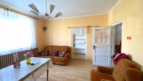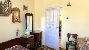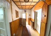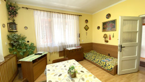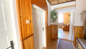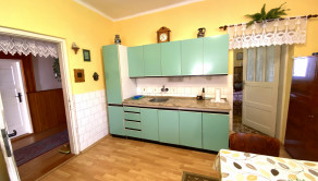 Rodinný dom s pekným pozemkom o výmere 1060 m2, je podpivničený, aj so samostatným vstupom z dvora. Dom má tieto priestory: – cca 1 m pod úrovňou zeme sú tam 4 miestnosti – kotolňa s elektrickým kotlom Protherm a kotlom na tuhé palivo zn. Modra, miestnosť s vodárničkou, sklad materiálu a sklad ovocia a zeleniny. Na 1- om podlaží sú dve predné izby, 1x väčšia kuchyňa s kuch. linkou a 1x menšia kuchynka s plynovým sporákom, kúpeľne s vaňou a WC, z ktorej je výlez na priestrannú pôjdovú časť. Podlahy vo všetkých izbách sú plávajúce, okrem jednej, tam je drevená podlaha /dyle/; v malej kuchynke a špajze je natiahnutá PVC podlaha. V dome sú osadené pôvodné dvojité okná a dvere.