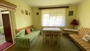 Stavba domu má zmiešanú konštrukciu zo 60-ych rokov, priestranné izby a funkčné dispozičné riešenie, 1m pod úrovňou zeme sú pivničné priestory / cca 5x10m / Na prízemí sú hospodárske priestory, kuchyňa s plynovým sporákom a pecou na tuhé palivo, špajza a kúpeľňa s vaňou, na 1-om podlaží sú 3 izby, veľká špajza, kúpeľňa s WC, chodba a veranda. Vykurovanie je riešené plynovými gamatkami ( celkovo 5 ks). Podlahy v troch izbách sú drevené, tzv. dyle, vo verande, zvyšné priestory majú dlažbu. Plechová strecha a krovy sú v dobrom stave. Vodovod je pripojený z obecného rozvodu, ale je možnosť aj vlastného vodovodu z 5m hlbokej prípojky na dvore. Kanalizácia je vyvedená za dom, v záhrade trativodom do zbernej jamy. Rovinatá záhrada s ovocnými stromami je ohraničená lúkou a riečkou Laborec.