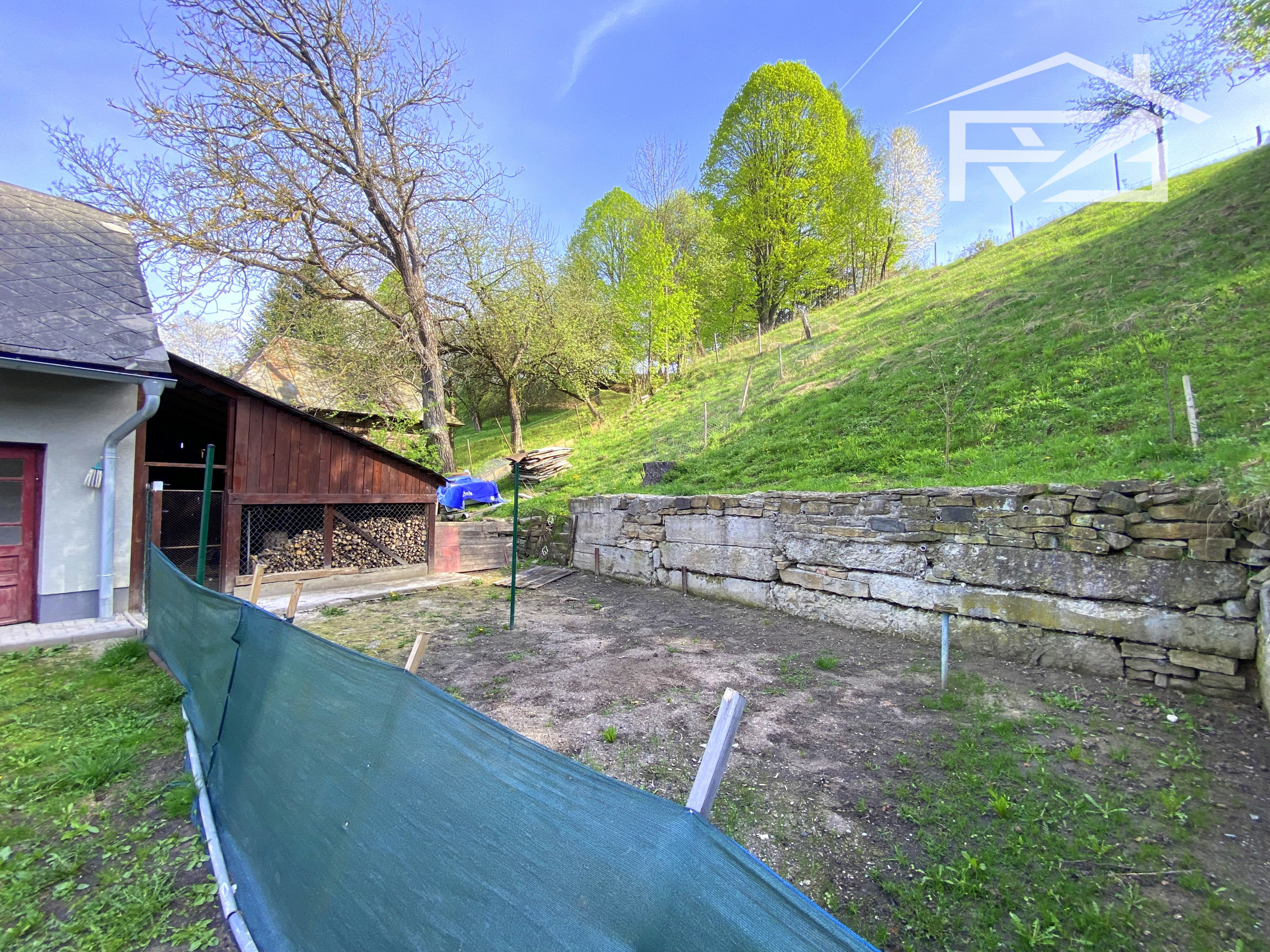 Pozemok má veľkosť cca 1000 m2, v prednej časti /dvor/ je pekný rovinatý, potom časť záhrady pokračuje strmo hore.