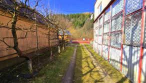 Dom je napojený na mestský vodovod a plynovod. Odpadové potrubie je vyvedené do betónovej 5m3 žumpy. Plechová strecha domu je pravidelne udržiavaná. Na pôjdovej časti je zateplenie – komplet fúkaná izolácia. Zadnú časť nehnuteľnosti tvorí dreváreň, hospodárska budova – murovaná stavba, kde je letná kuchyňa s plynovým sporákom, špajza, sklad náradia a samostatná murovaná garáž. Hneď za ňou je kamenná pivnica s dvomi miestnosťami a hospodárske priestory. Záhrada je vzorovo usporiadaná v stromoradí ovocných stromov a kríkov, ktoré sú zavlažované samospádom z miestneho potoka. Na konci záhrady je útulná záhradná chatka s terasou a jednou izbou.