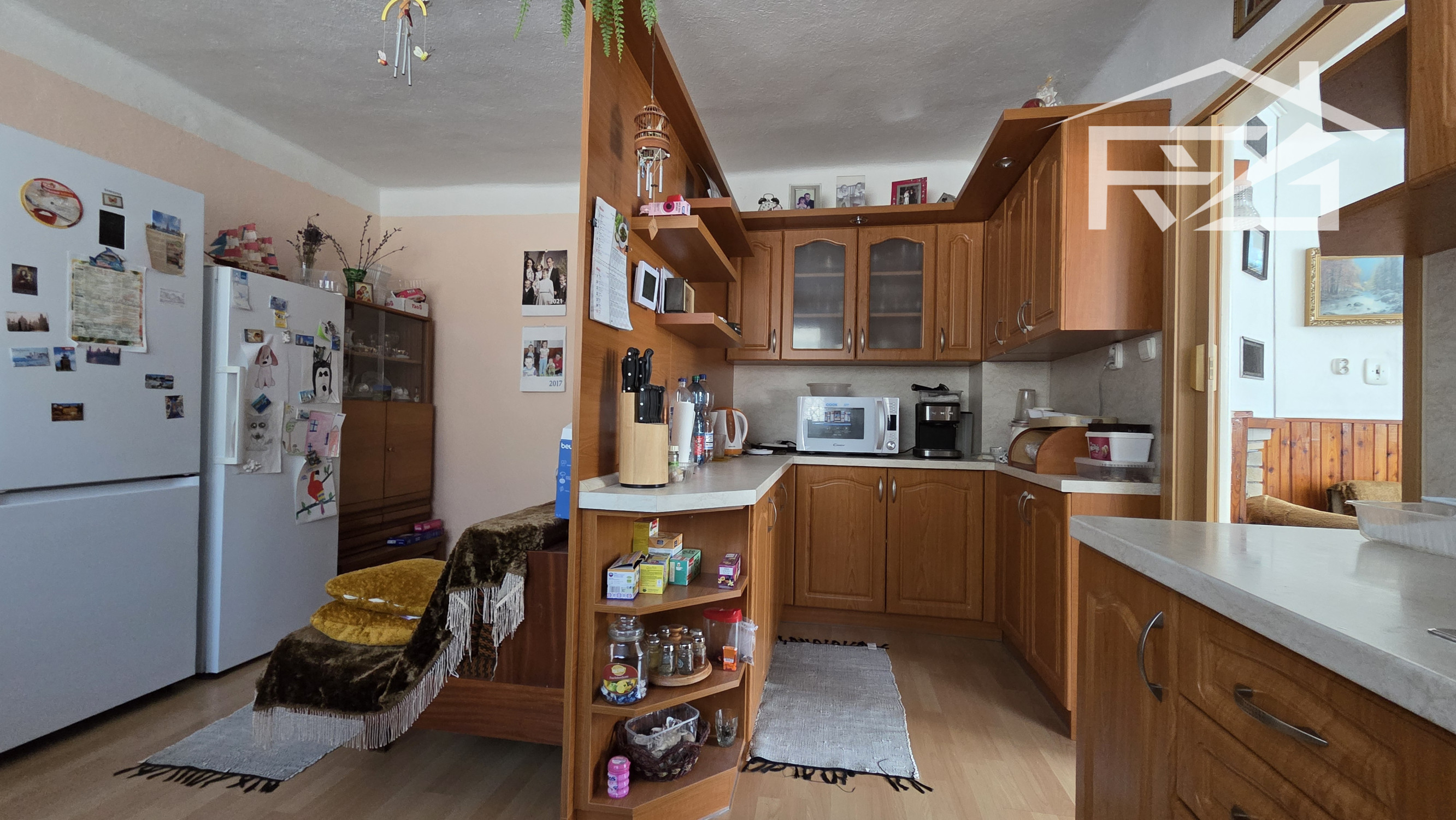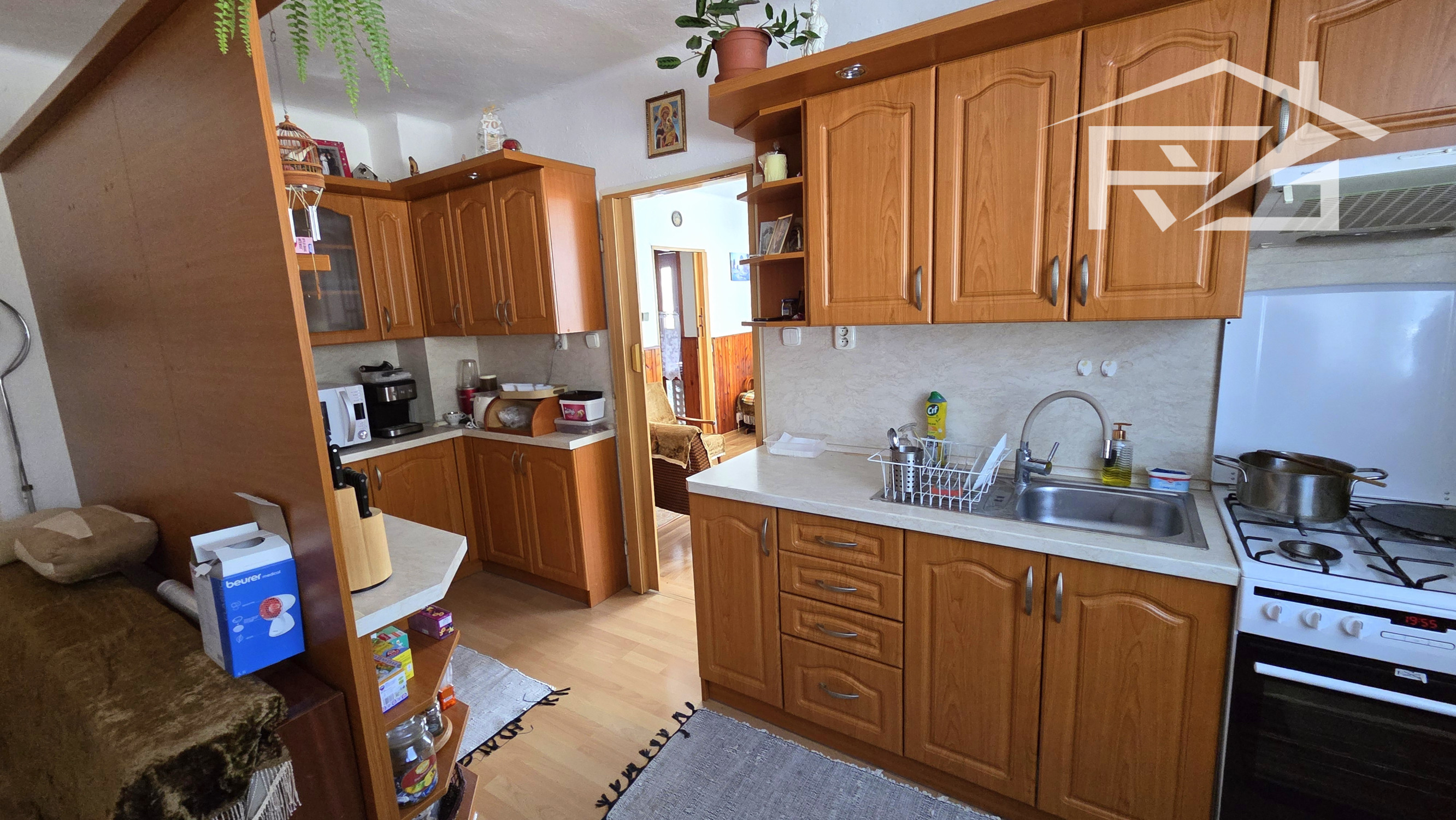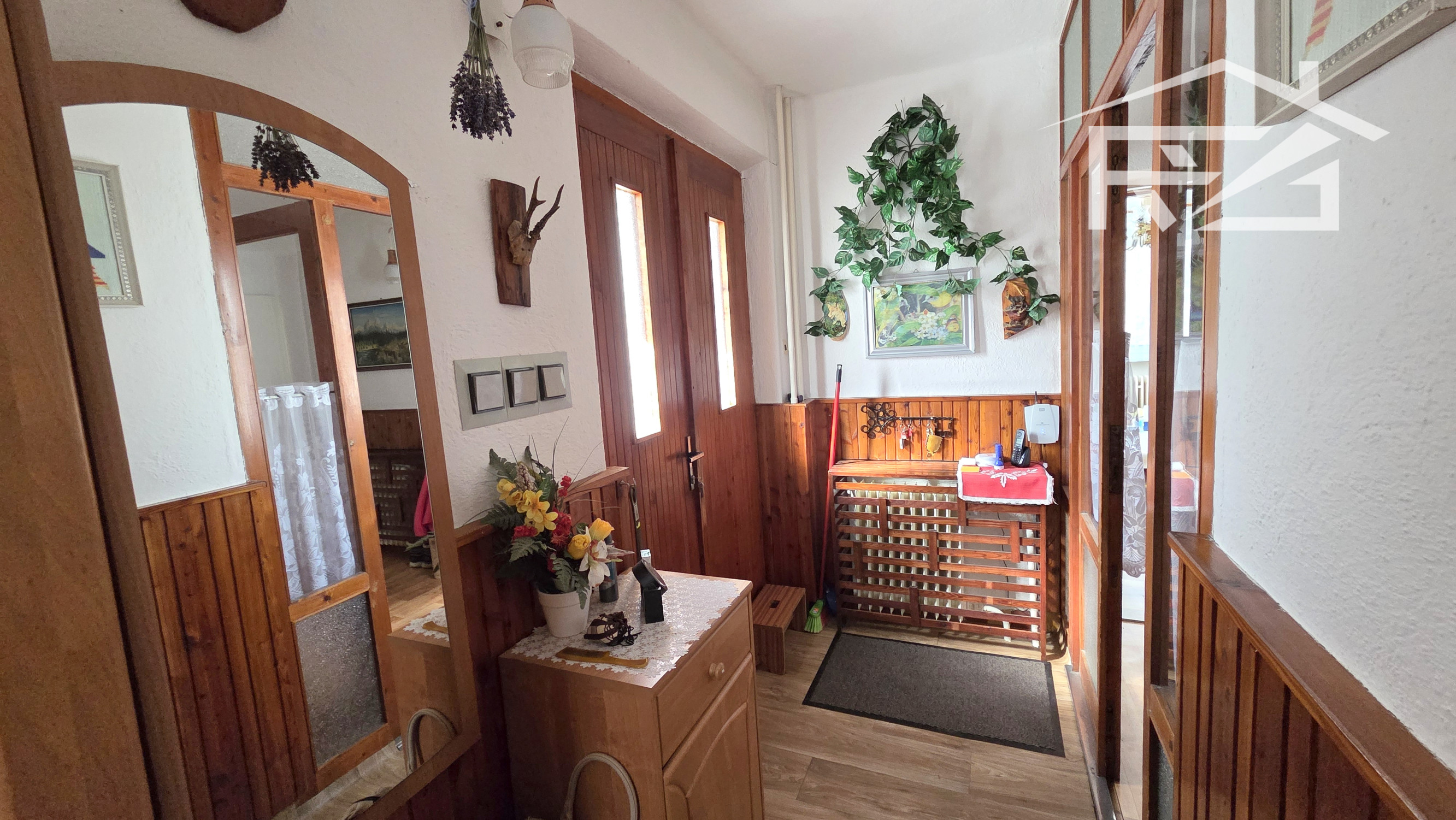 Dom pozostáva z týchto priestorov: Na 1-om podlaží je kuchyňa s dvojdielnou linkou, novým sporákom a ďalšími spotrebičmi, obývačka s kozubom, kotolňa, kúpeľňa s vaňou a novým preskleneným sprchovacím kútom, WC, a práčkou, 2x špajza a chodba a vstupný priestor . 2.-é podlažie má vstupnú chodbu, 4x izba z toho jedna miestnosť pripravená aj na kuchyňu, balkón, špajza, skladová miestnosť, samostatné WC s umývadlom. Z jednej izby cez balkón prejdete na terasu zo strešnej plochy. Vykurovanie je riešené dvomi spôsobmi: liatinovým kotlom zn. Viadrus na tuhé palivo, a novým plynovým kotlom zn. Bosch s prietokovým ohrevom vody, ohrev vody je možné ešte elektricky a ústredným kúrením 160 l bojlerom. Okná sú plastové zn. Slovaktual. Elektrické rozvody po dome sú medené.