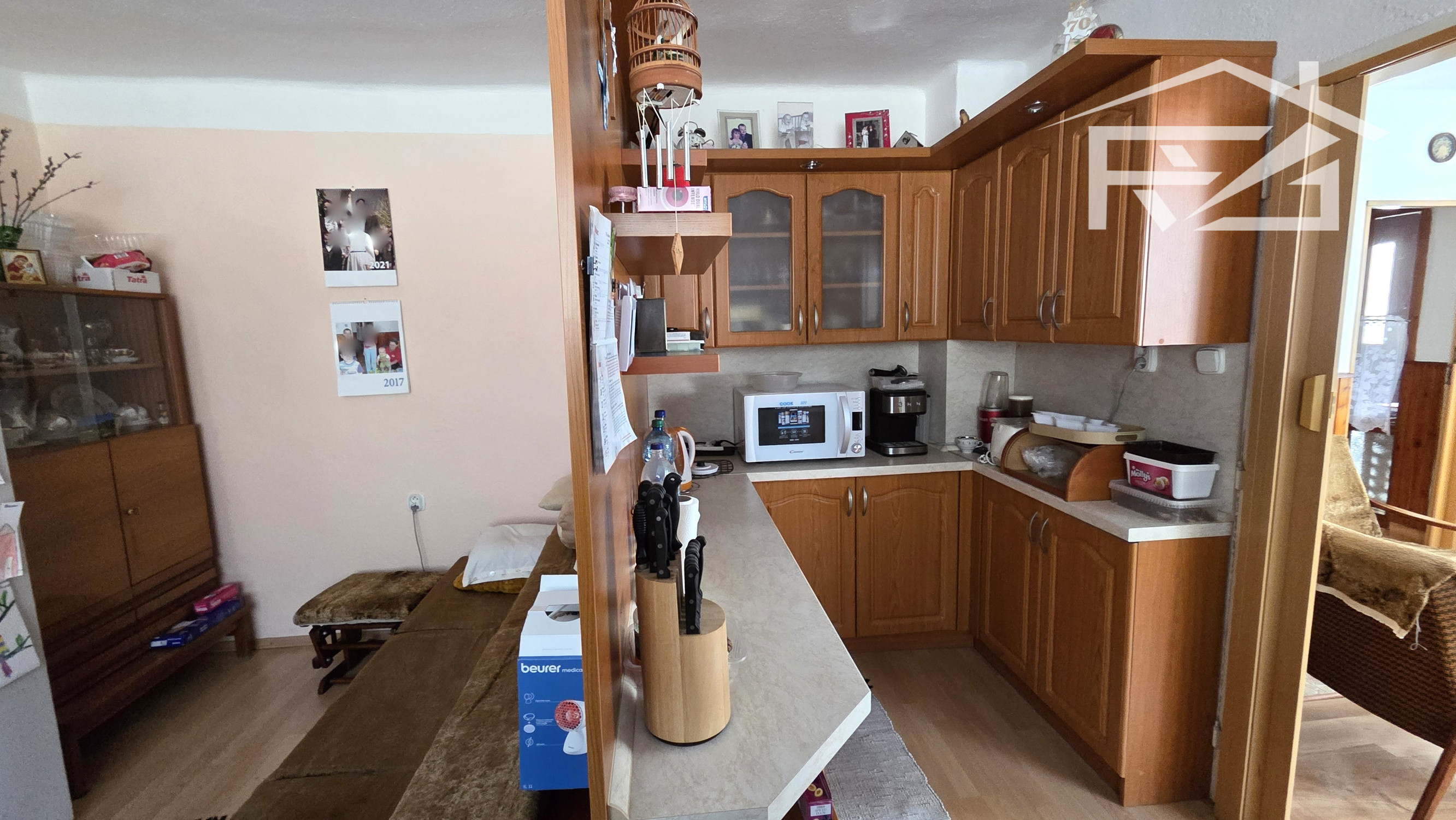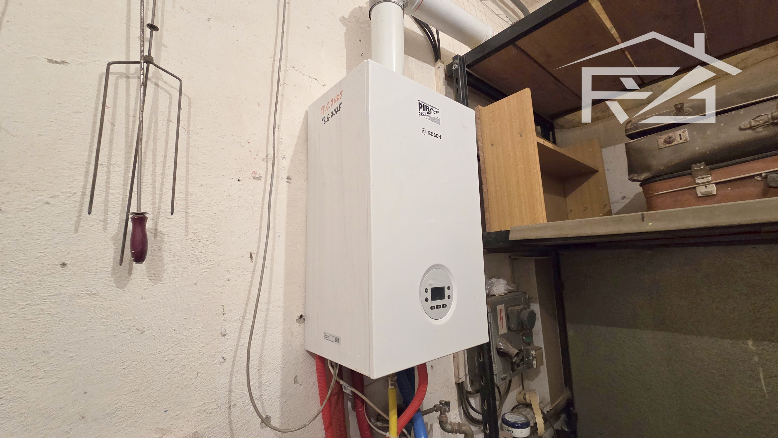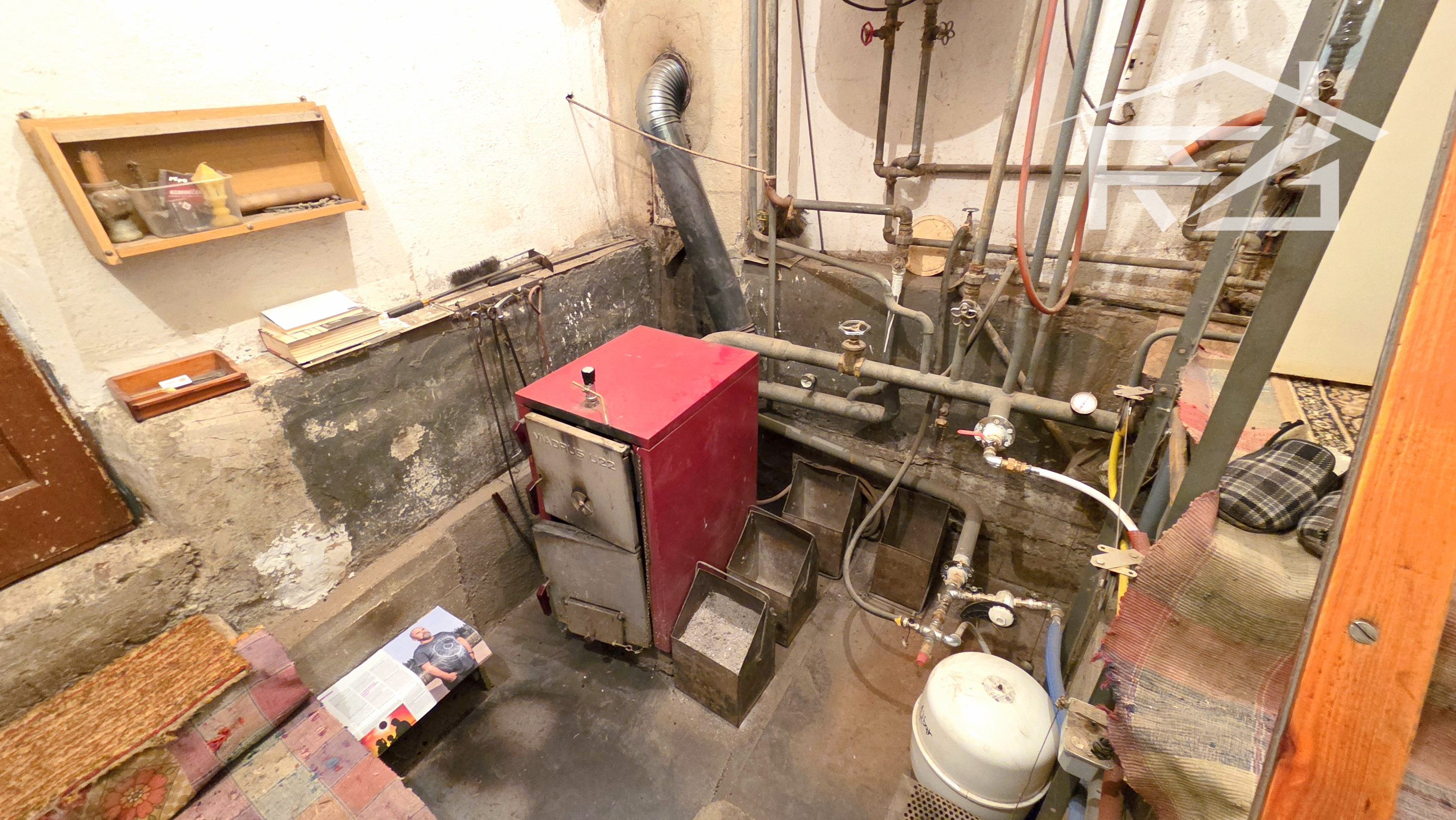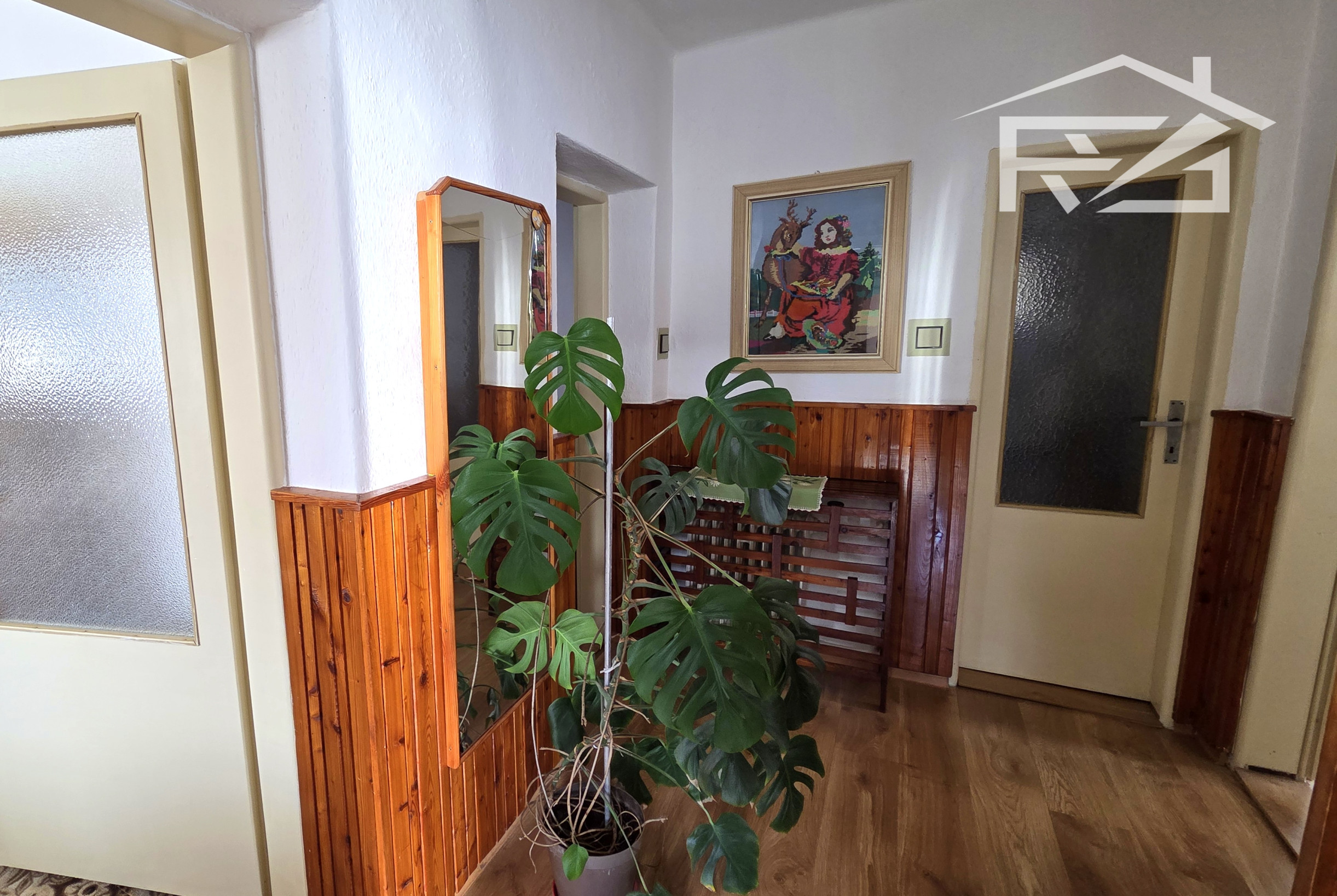 Dom pozostáva z týchto priestorov: Na 1-om podlaží je kuchyňa s dvojdielnou linkou, novým sporákom a ďalšími spotrebičmi, obývačka s kozubom, kotolňa, kúpeľňa s vaňou a novým preskleneným sprchovacím kútom, WC, a práčkou, 2x špajza a chodba a vstupný priestor . 2.-é podlažie má vstupnú chodbu, 4x izba z toho jedna miestnosť pripravená aj na kuchyňu, balkón, špajza, skladová miestnosť, samostatné WC s umývadlom. Z jednej izby cez balkón prejdete na terasu zo strešnej plochy. Vykurovanie je riešené dvomi spôsobmi: liatinovým kotlom zn. Viadrus na tuhé palivo, a novým plynovým kotlom zn. Bosch s prietokovým ohrevom vody, ohrev vody je možné ešte elektricky a ústredným kúrením 160 l bojlerom. Okná sú plastové zn. Slovaktual. Elektrické rozvody po dome sú medené.